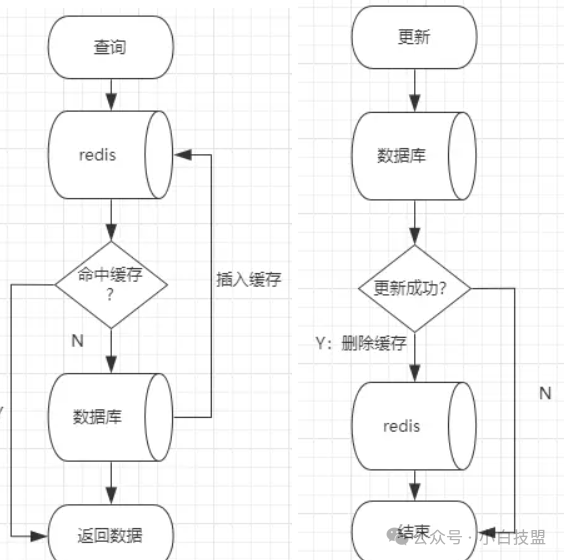 在查询时,首先去查询缓存,如果命中了缓存,就取出返回数据。如果没有命中缓存,则去数据库进行查询,并保存在redis缓存中,这样保证了缓存的数据会进行更新;对数据进行更新的时候,先进行DB数据的更新,再删除缓存,这样避免了旧数据缓存一直存在(查询时一直命中旧数据缓存)