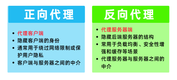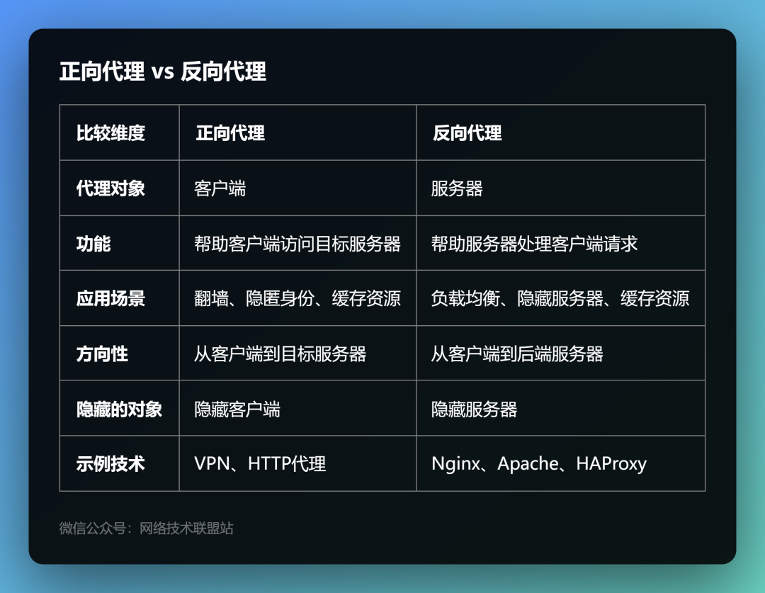 三、正向代理 vs 反向代理:有啥区别?🆚虽然正向代理和反向代理都称为"代理",但它们的作用、方向和应用场景完全不同。