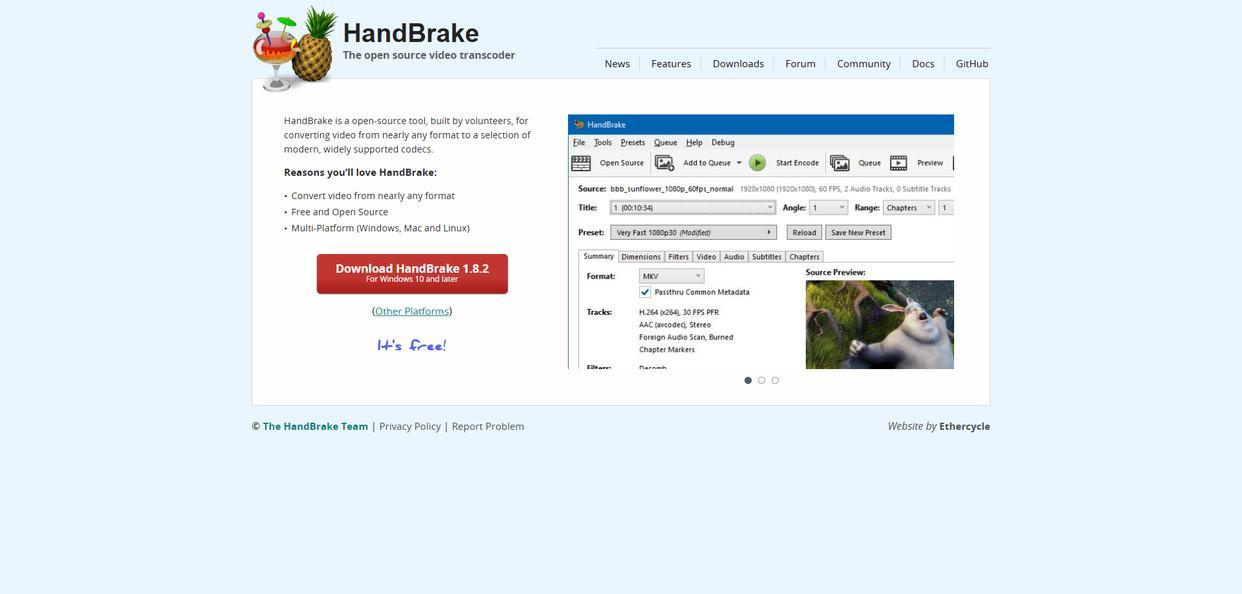 HandBrake 是一款开源且免费的视频压缩工具,它支持多种视频格式,包括 MP4、MKV 等常见格式。