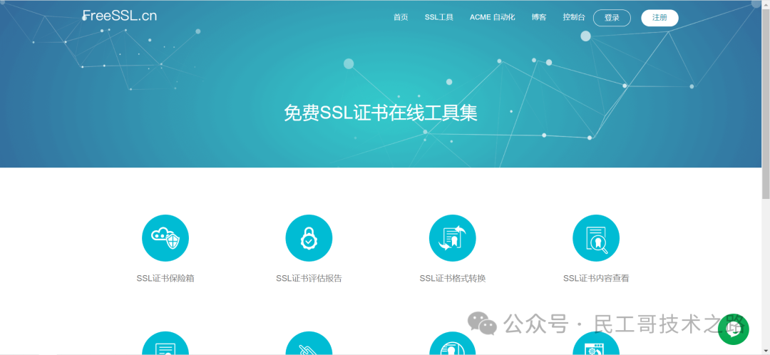 acme.sh 是一个知名的用于申请 Let's Encrypt 证书的开源项目,项目地址:https://github.com/acmesh-official/acme.sh,也是属于脚本类型,有比较详细的文档,支持自动化更新和自动化部署。 唯一缺点,如果有更新后自动部署至多个节点的需求的话,acme.sh无法满足。如果你有一定的命令行使用经验,acme.sh使用起来还是非常方便,强烈推荐!关于更新后自动部署至多个节点的需求,建议使用下面介绍的ohttps.com。 freessl.cn