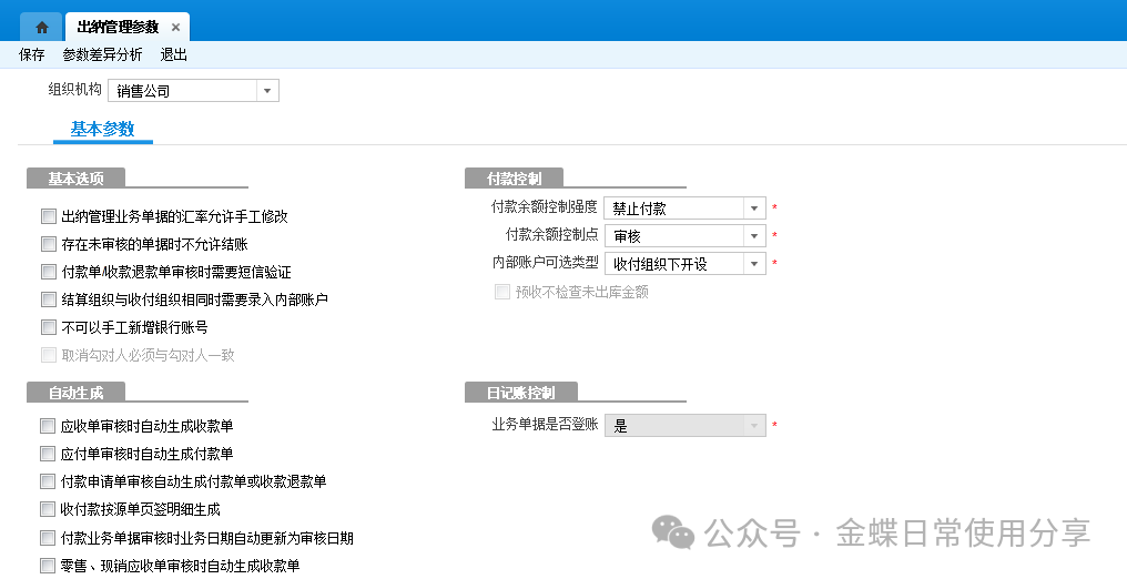 1、出纳管理【业务场景】:出纳管理系统是出纳人员的工作平台,支持企业出纳人员在系统中完成所有相关的货币资金、票据以及有价证券的收付、保管、核算等日常工作,并提供出纳管理报表查询 【用户角色】:出纳 【功能菜单】:【财务会计】->【出纳管理】 2、业务流程【业务场景】:出纳管理系统是出纳人员的工作平台,支持企业出纳人员在系统中完成所有相关的货币资金、票据以及有价证券的收付、保管、核算等日常工作,并提供出纳管理报表查询 【用户角色】:出纳 【功能菜单】:【财务会计】->【出纳管理】 3、基础设置3.1设置公用资料【业务场景】:管理和维护企业的公用资料 【用户角色】:出纳 【功能菜单】:【基础管理】->【基础资料】 【操作说明】:包括供应商、客户、币别、结算方式、物料、费用项目、采购部门、采购组、采购员、组织信息、账簿信息、汇率体系等。该部分数据如果用户由于已经使用供应链、总账等模块已经设置,则在使用出纳管理模块时不需要单独设置。 3.2设置系统参数【业务场景】:根据企业现有情况勾选出纳管理参数 【用户角色】:出纳 【功能菜单】:【财务会计】—>【出纳管理】—>【参数设置】—>【出纳管理参数】 【操作说明】:根据业务需求勾选相对应的参数 3.3设置基础资料【业务场景】:企业根据真实业务情况设置收付款用途 【用户角色】:出纳 【功能菜单】:【财务会计】—>【出纳管理】—>【基础资料】—>【收付款用途】 【操作说明】:收付款用途可根据实际业务请款增加