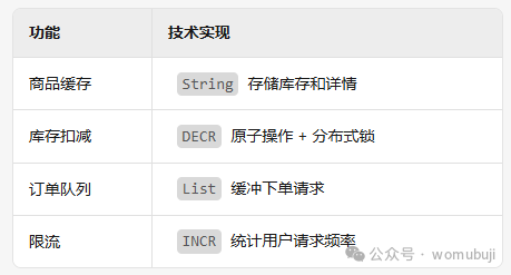 - 核心原理将高频访问数据(如商品详情、用户信息)存入内存,减少数据库压力。