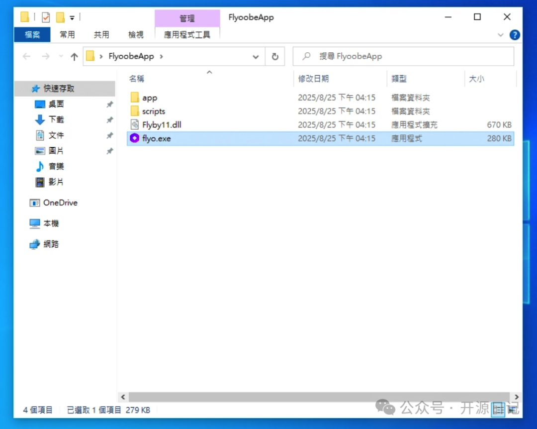 - 1.到 [Flyoobe GitHub 页面]下载最新版本并解压。