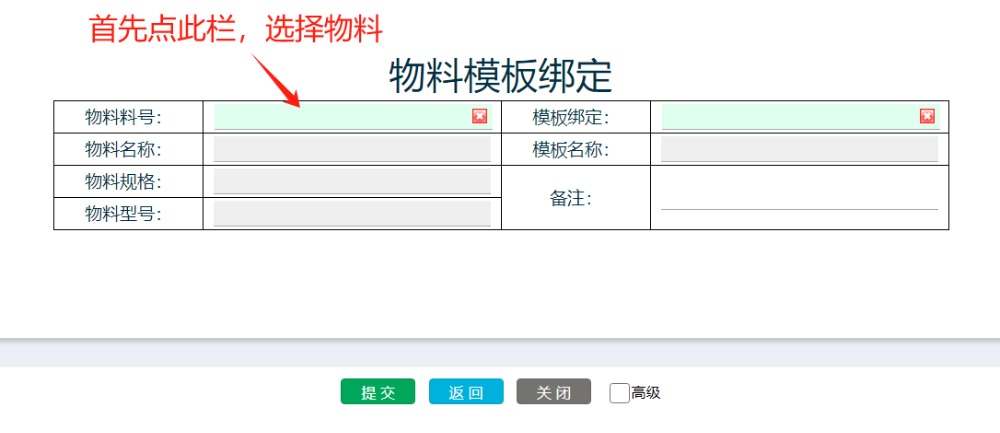 选择完物料后再选择模板