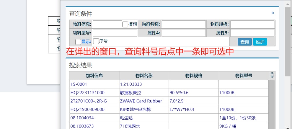 点击物料栏,选择物料