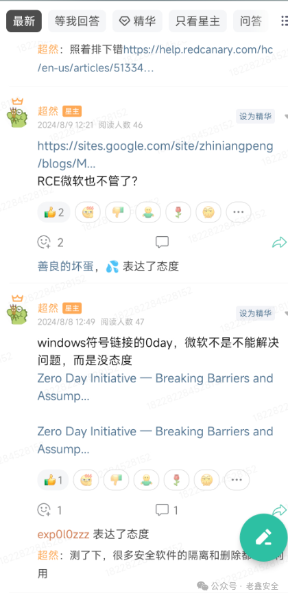 假如这是典型杀毒软件磁盘扫描功能中的一个代码片段——它获取文件路径,使用恶意软件特征库检测该文件数据,若发现有问题则删除该文件。 恶意程序可以创建一个文件,填入特定杀毒引擎能检测到的字节(例如,写入 EICAR 字符串),通过某种方式触发杀毒扫描(比如尝试读取该文件以触发实时防护扫描),随后迅速将该文件替换为指向其他文件的符号链接。 这就形成了众所周知的条件竞争:is_infected_file()处理的是一个文件,但remove_file()可能会处理另一个文件!路径虽然相同,但在这两个函数中指向了不同文件:一个是检测到有问题的常规文件,另一个是指向他处的符号链接。 So,remove_file()将删除符号链接指向的目标(该目标可由攻击者指定)。如果这个目标是杀毒软件自身的EXE,那么就会发生以下这种搞笑事情 比如有一个以NT AUTHORITY\SYSTEM身份运行的杀毒服务。黑客在设备磁盘上放置恶意的EICAR测试文件,随后开始循环检查文件的最后访问时间戳”,试图检测其文件是否被访问。当杀毒软件访问该文件并识别出恶意内容后,尝试将其从磁盘删除。然而就在此时,黑客将其文件替换为符号链接——该链接通过结合NTFS挂载点与对象管理器符号链接,最终指向杀毒软件自身的核心文件。如此一来,杀毒软件便完成了自我删除的窒息操作 见上图,存在任意文件删除漏洞的安全产品可不少呢,虽然很多都已经修复勒无法复现。但别担心,兄弟,软柿子始终都是有的,经过测试还有很多存在这种漏洞,为了避免风险,这里以Windows Defender为例...... 实战案例:Windows Defender的符号链接攻击每当有新版本更新时,WinDefend服务都会创建一个以新下载的版本命名的新文件夹,并将其放置在“ C:\ProgramData\Microsoft\Windows Defender\Platform ”文件夹中。新文件夹包含新版WinDefender的所有可执行文件。 当 Windows Defender 从旧版本过渡到新版本时会发生什么 ?