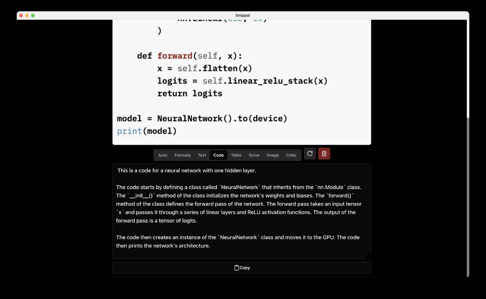 [点晴永久免费OA]Snippai:一款功能强大的智能截图工具,不仅能够识别图像中的公式和文本,还能表格转换、代码理解和语言翻译等
